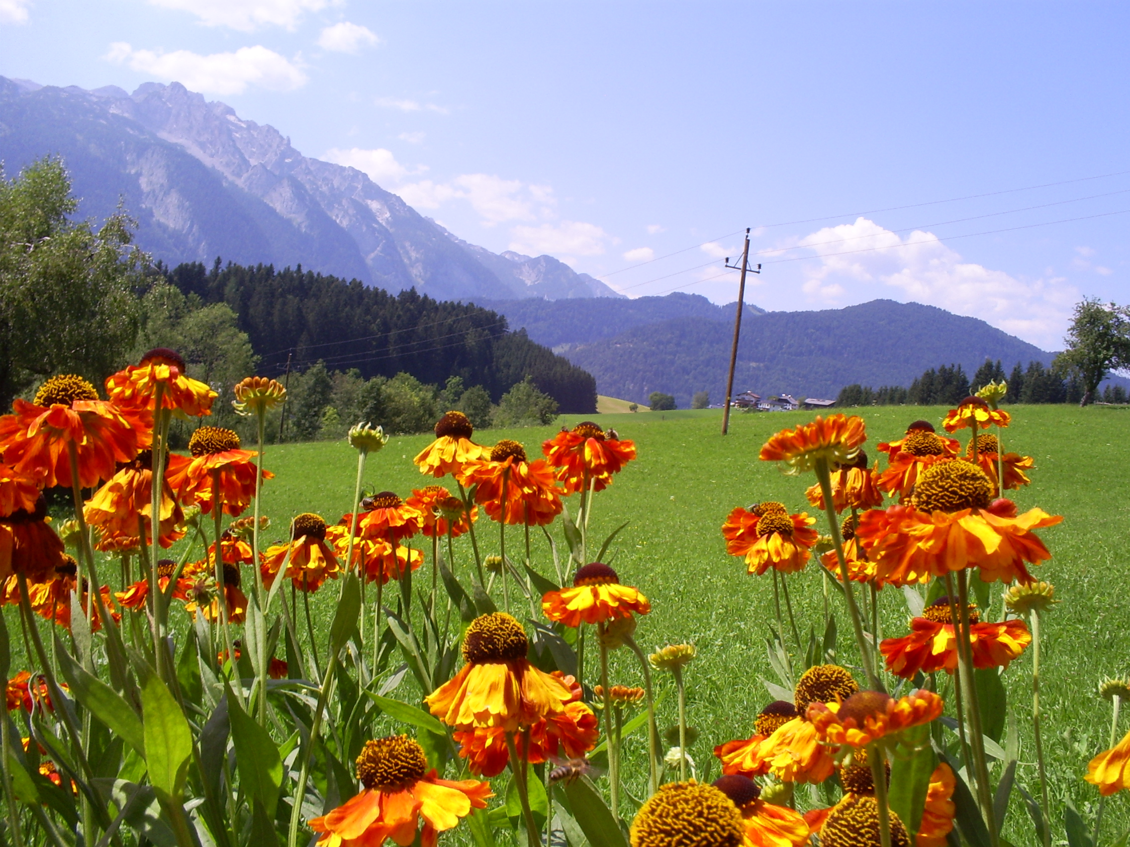 Genießen Sie unseren wunderschönen neu angelegten Blumengarten auf der Terrasse oder am Balkon bei einem Glas Wein.